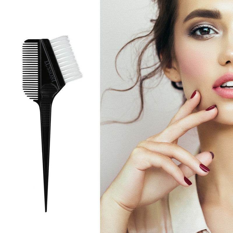 Dwustronny pędzel do koloryzacji przyda się w każdym salonie fryzjerskim. Model LUSSONI TB 032 z jednej strony ma trwałe, dobrze wyprofilowane, nylonowe włosie, z drugiej poręczny grzebień. Pomaga szybko i równomiernie nałożyć farbę. Rączka zakończona szpikulcem ułatwia dzielenie włosów na sekcje.