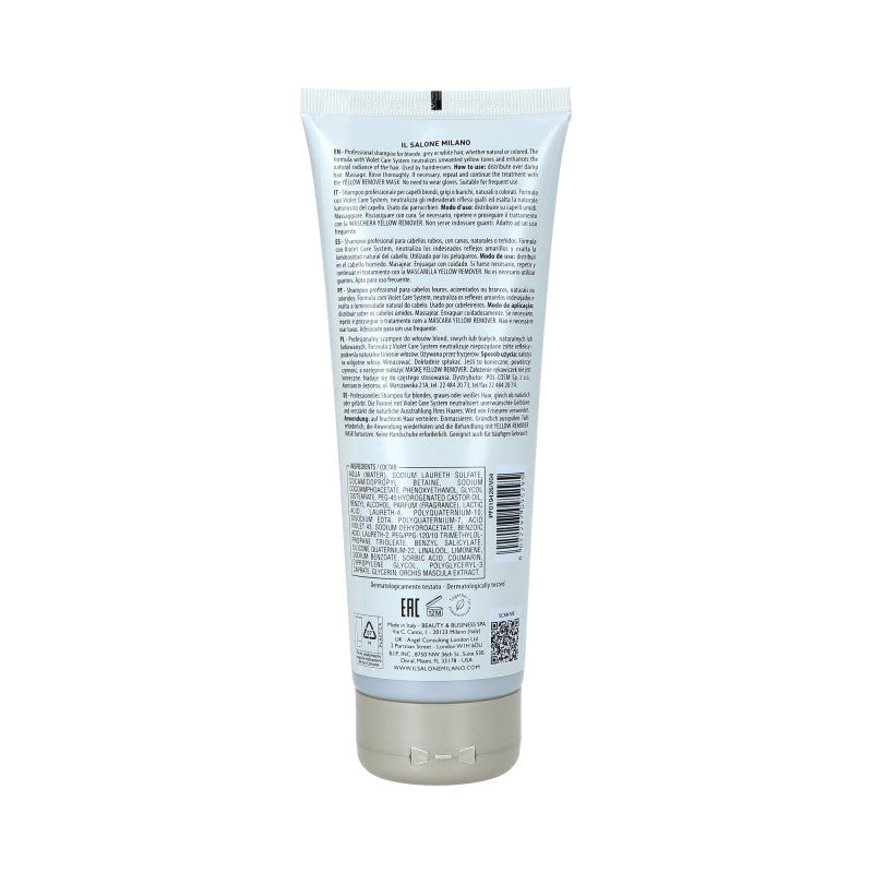 Say goodbye to unwanted yellow tones and enjoy a perfectly cool shade of blonde or gray hair! Alfaparf Il Salone Milan Yellow Remover is a professional purple shampoo that effectively neutralizes yellow tones, restoring a clean, cool shine to your hair. Thanks to the innovative Violet Care System formula, combining orchid extract and Violet 43 pigment, the shampoo not only corrects the color, but also intensively cares for the hair, moisturizing it and protecting it from drying out. Its delicate, yet effective formula makes the hair soft, smooth and full of shine, without weighing it down.