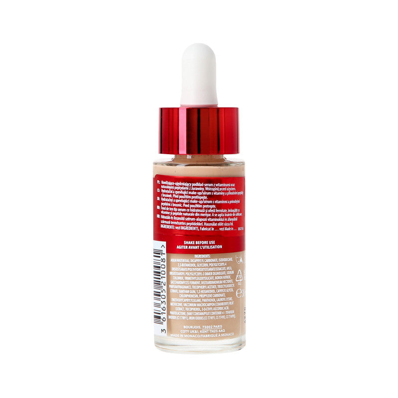 BOURJOIS Healthy Mix Serum is an innovative foundation that combines the care properties of a serum with the coverage effect of a foundation. Thanks to its light, silky consistency, it provides a natural finish and comfort of wear throughout the day. The formula enriched with vitamins C, E and B5 and cranberry extract supports skin hydration, improves its elasticity and gives a healthy glow. After 6 hours from application, the skin's hydration level increases by 50%.