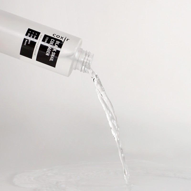 COXIR Black Snail Collagen Toner is a nourishing moisturizing toner that supports skin regeneration, strengthens its protective barrier and helps smooth fine lines. The formula based on snail mucin, collagen and black superfood extracts (black rice, black beans, black sesame) effectively moisturizes, nourishes and improves skin elasticity, giving it a healthy and radiant look.