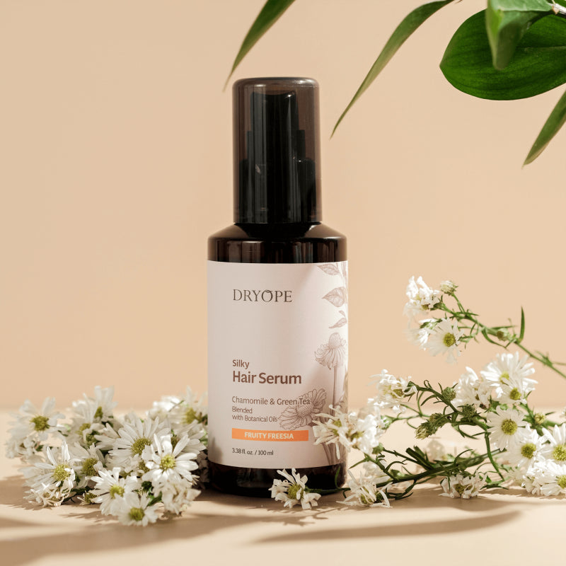 DRYOPE SILKY HAIR is a highly nourishing, vegan oil serum designed specifically for dry, dull, and damaged hair. Its unique, concentrated formula contains no water or alcohol—instead, it relies on pure plant oils to intensively regenerate and rebuild hair from root to tip.