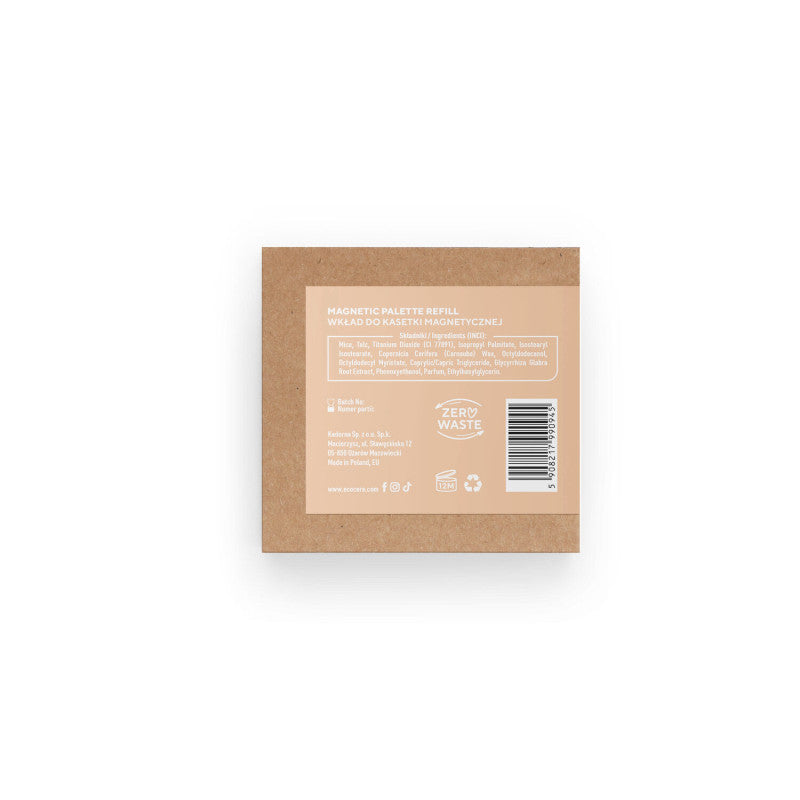The package contains a refill for the Ecocera Bamboo Cassette. The package contains a refill for the Ecocera Bamboo Cassette. INCI INGREDIENTS: Talc, Mica, Titanium Dioxide (CI 77891), Alumina, Isopropyl Palmitate, Isostearyl Isostearate, Copernicia Cerifera (Carnauba) Wax, Octyldodecanol, Octyldodecanol, Caprylic/Capric Triglyceride, Tin Oxide (CI 77861), Glycyrrhiza Glabra Root Extract, Phenoxyethanol, Parfum, CI 73360, Ethylhexylglycerin.