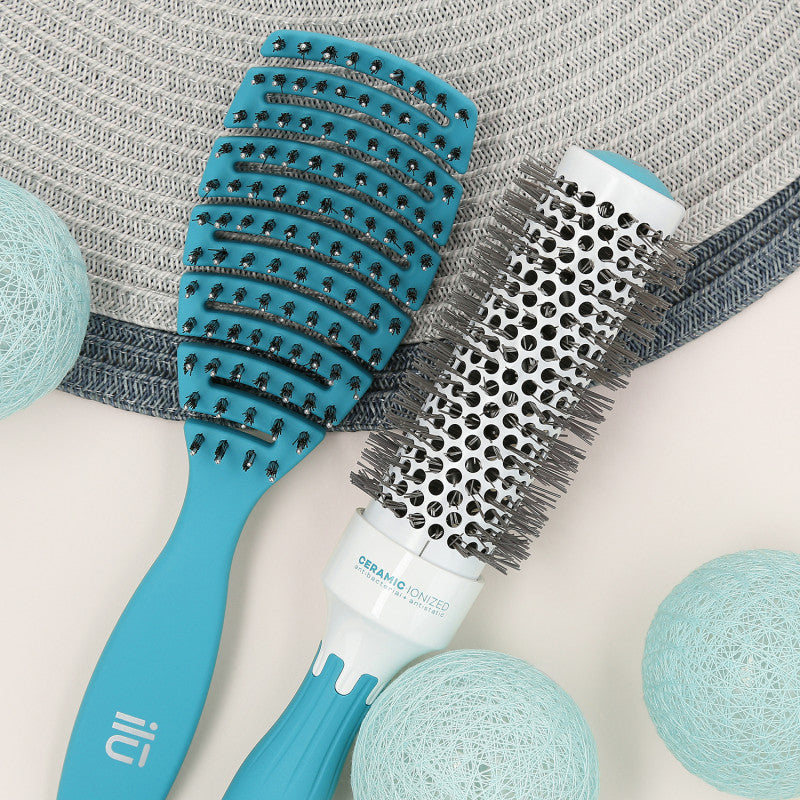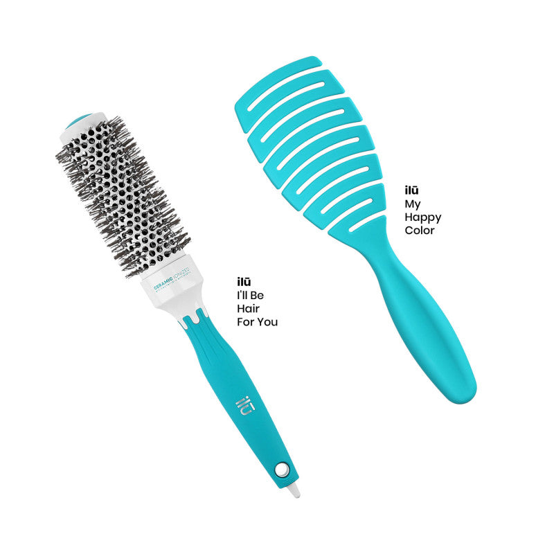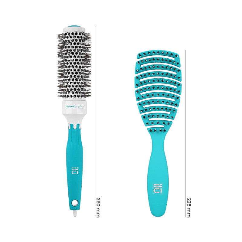 ilū 2 Pc Set Turquoise Detangling Hairbrush and Round Styling Hairbrush