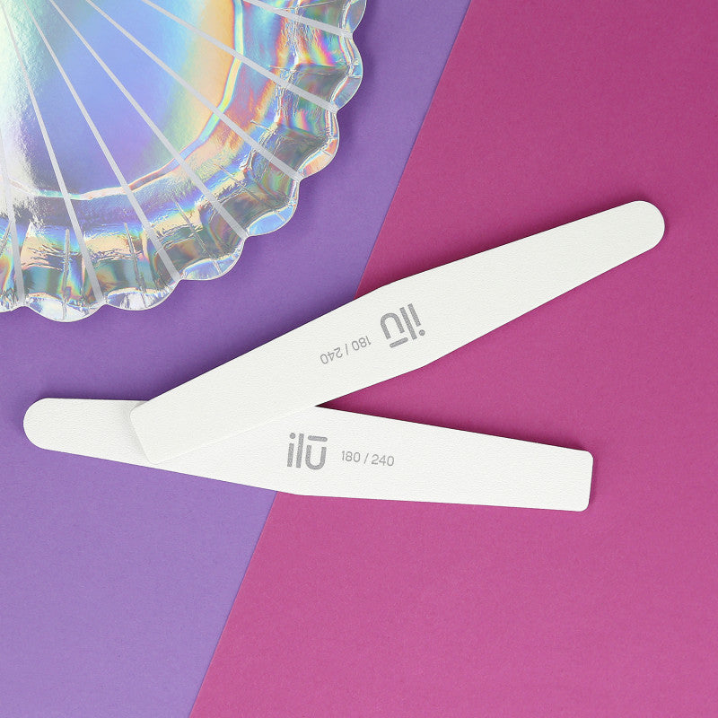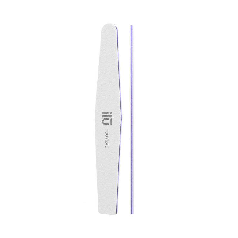 Fine grit file. 180 grit side will give your nails the final length and shape. 240 grit side will work well with matting natural nails and finishing care on acrylic or gel. The trapeze shape of the file enables precise care of even the most inaccessible areas. Used for both natural and extended nails. File a layer of gel or acrylic and model the nail into a specific shape. Ideal for everyday nail care.