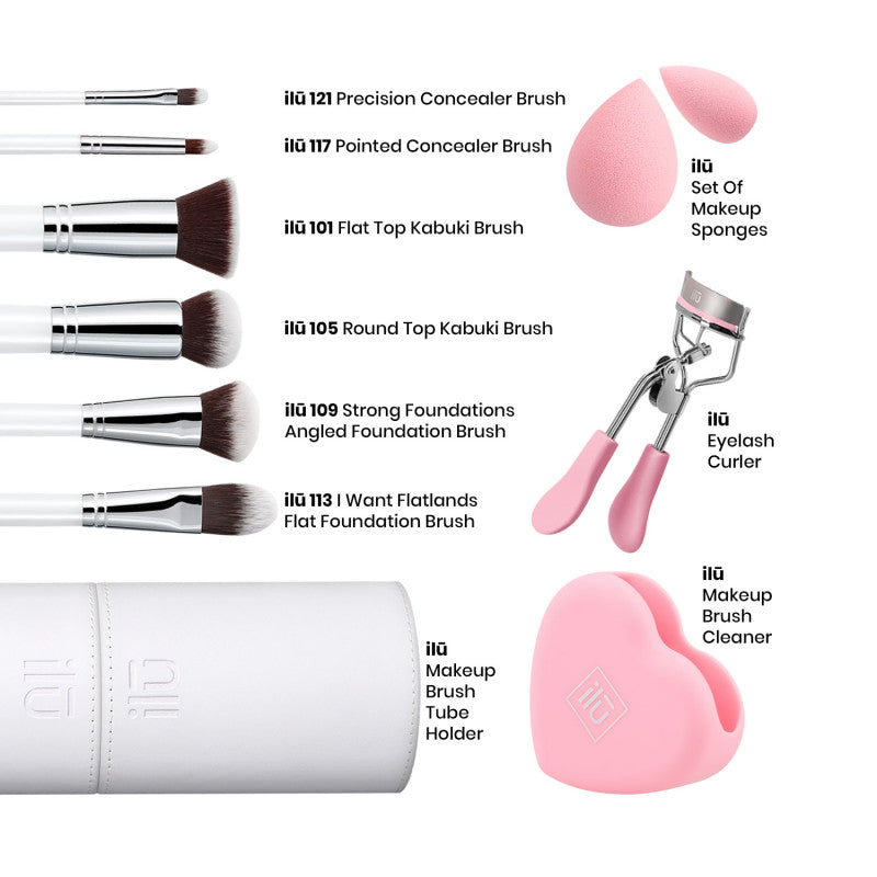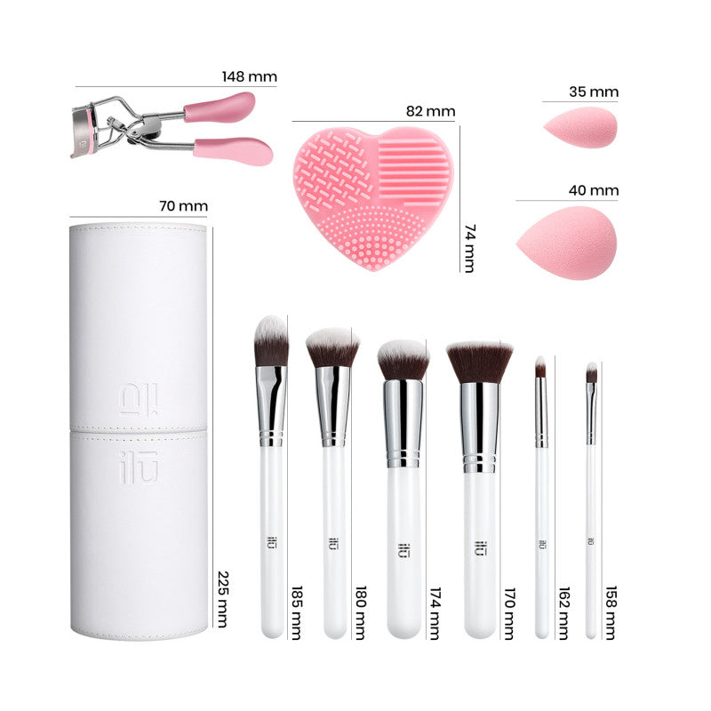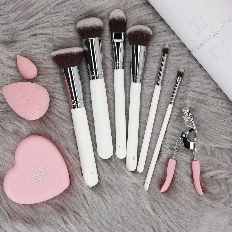If you think pink color is best for expressing your personality then check out our Pink Is An Attitude set. You will find 6 high-quality face brushes, soft sponges, an elegant tube case and our charming brush cleaner, and lets not forget a beautiful, pink eyelash curler.