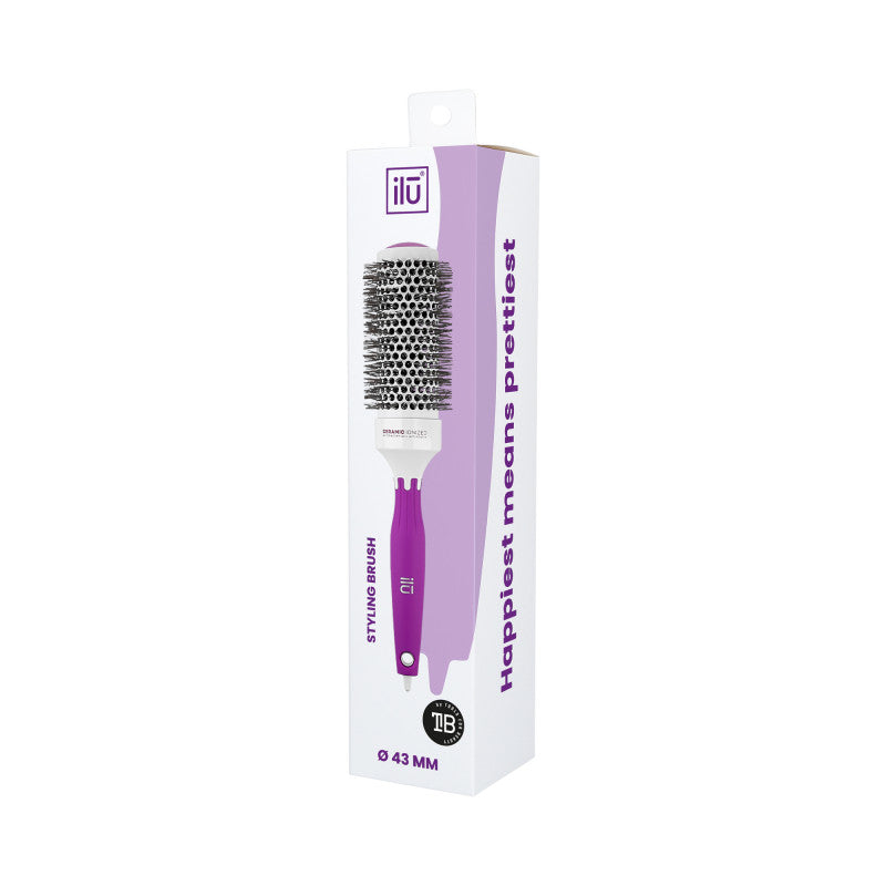 Ilū Happiest Means Prettiest Round styling brush is suitable for long and semi-long hair. The lightweight body, ergonomic, anti-slip handle and ceramic heat resistant coating create a perfect styling brush. The brush will help you to achieve glamourous, soft waves or perfectly shiny and sleek hair.