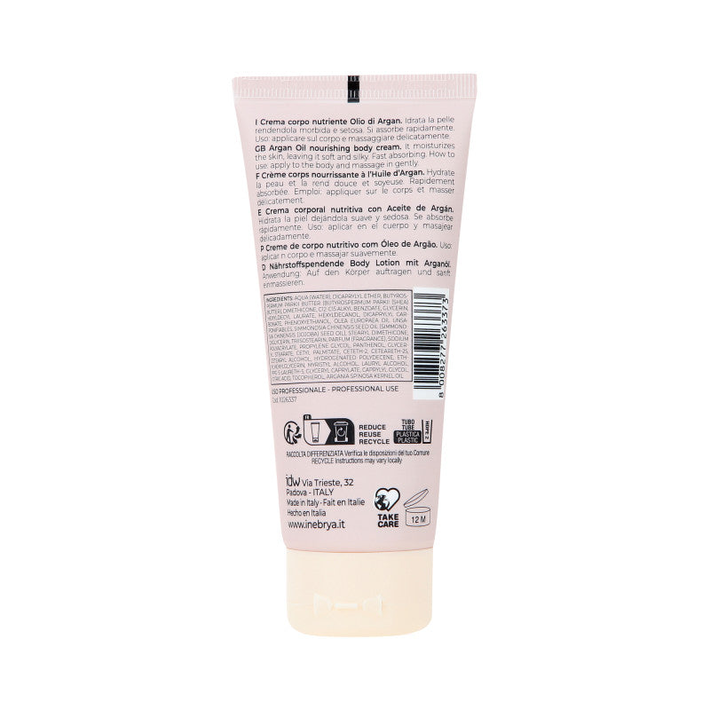 INEBRYA ICE CREAM ARGAN AGE is a nourishing body lotion designed for intensive care of skin requiring hydration and regeneration. Thanks to argan oil, shea butter , jojoba oil , and vitamin E, the product deeply nourishes the skin, restoring its softness and elasticity. The lightweight formula absorbs quickly without leaving a greasy residue, making it ideal for daily use.