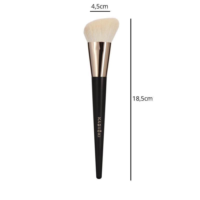 Thanks to the special shape of the Angled Blush Brush you will effortlessly apply products such as blush, highlighter or bronzer. It perfectly adapts to the shape of your face. Highest quality soft, natural goat bristles ensure smooth application of cosmetics for perfect contouring and emphasizing of your face shape.