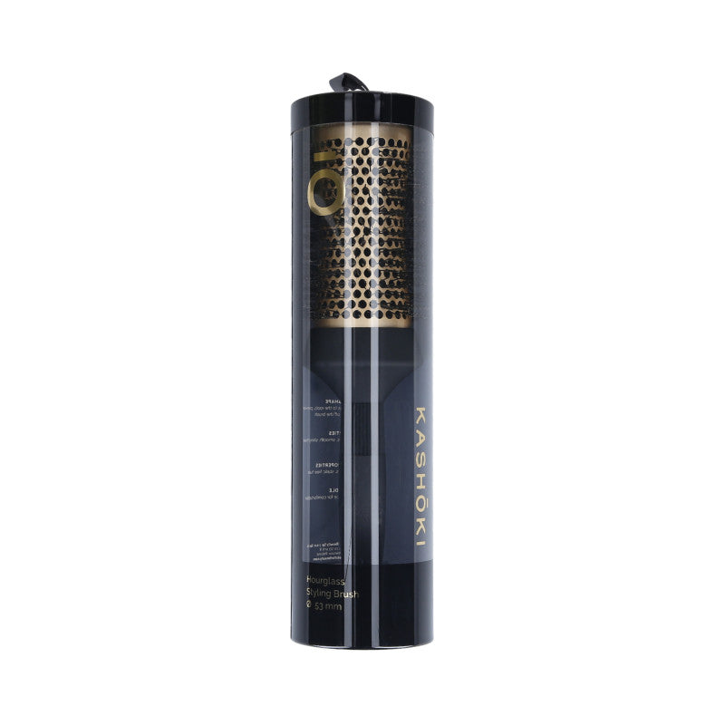 Kashōki Hourglass brush 53mm is recommended for straightening and styling long and very long hair. The brush helps to achieve smooth and bouncy hairstyle with healthy, shiny finish. The Timeless Beauty collection is suitable to use at home and professional hairdressing salon.