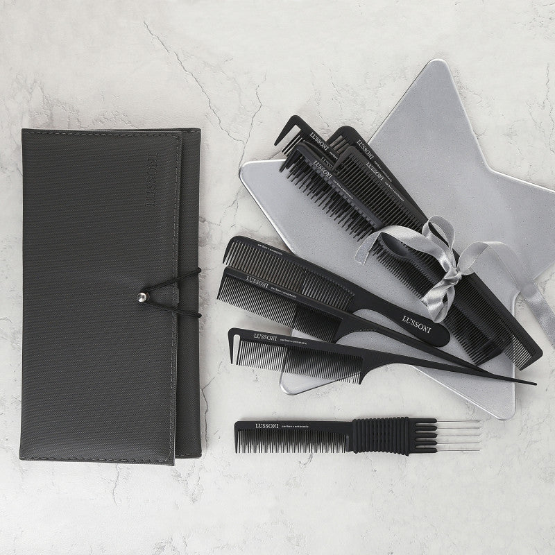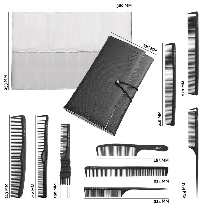 LUSSONI 10 Pcs Professional Comb Set With Case