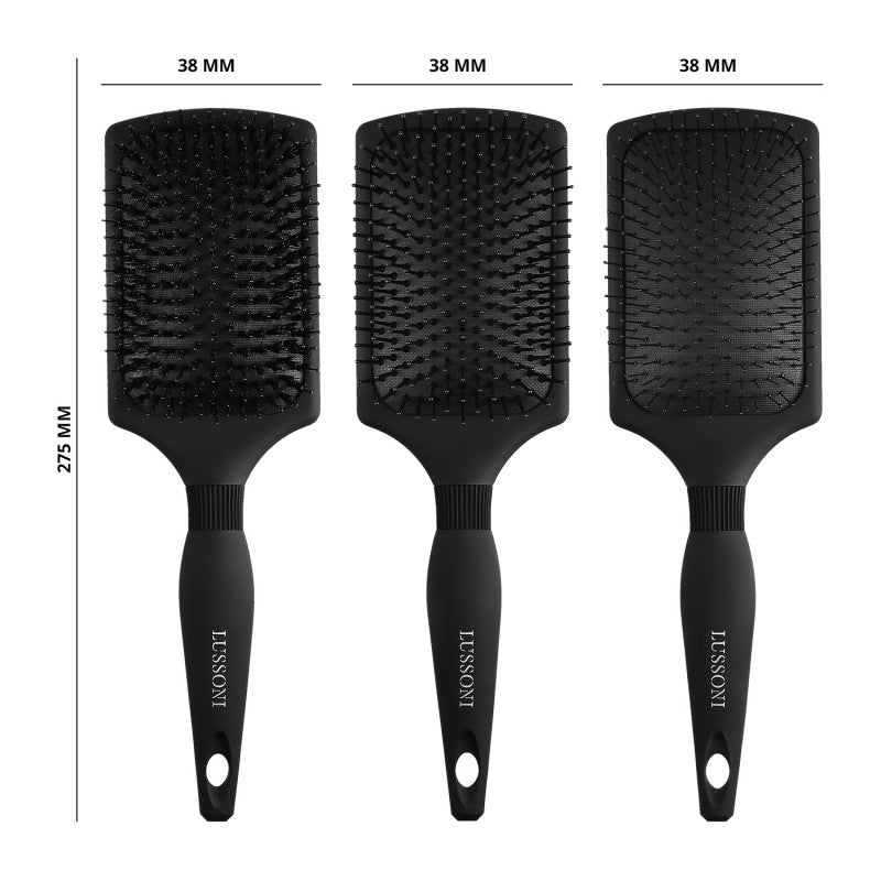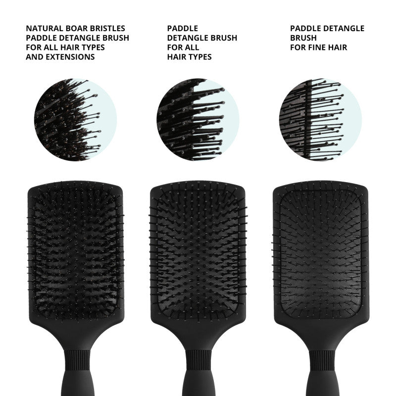 - Complete Set – The set contains 3 distinct paddle hairbrushes for detangling from long thick hair to the finest and most delicate hair