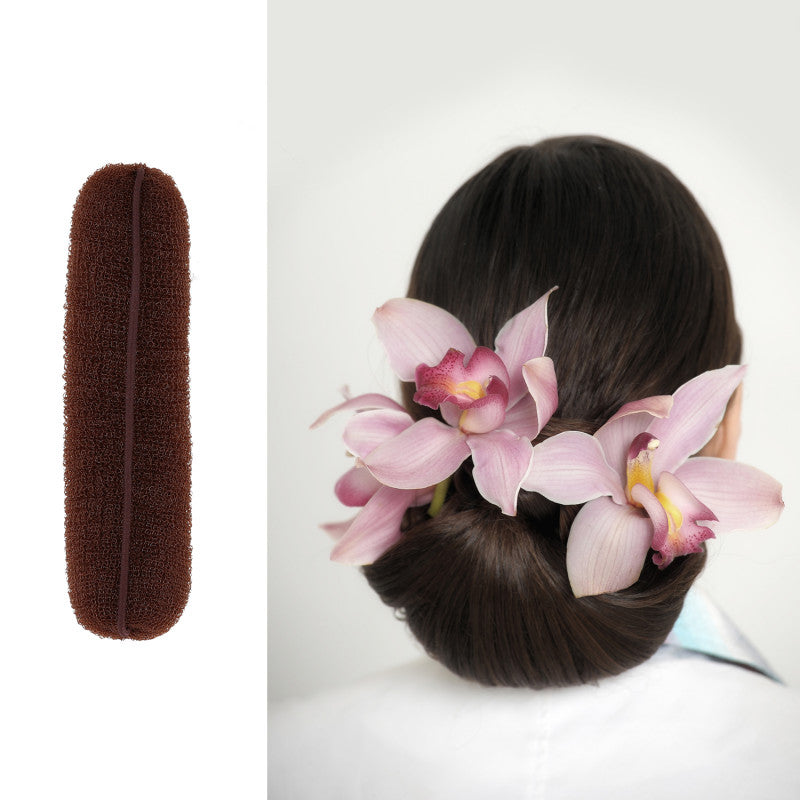 LUSSONI Hair Bun Roll with rubber band, Brown, 150 mm