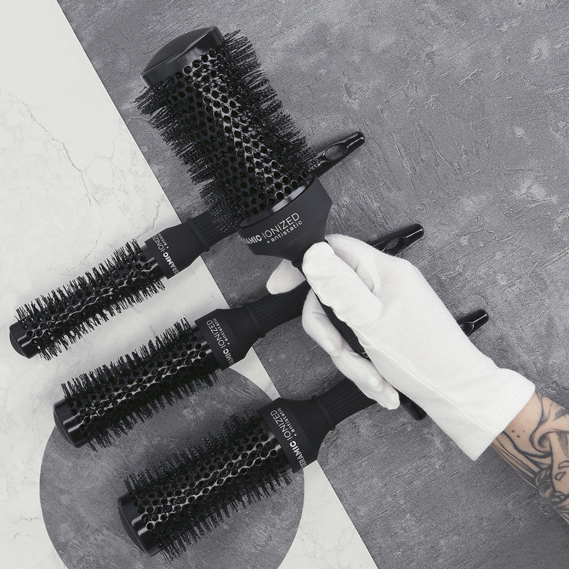 Lussoni Hourglass brushes stand out from other accessories because of their elegant appearance and because of their added properties. Their hourglass-shaped bodies make it possible to style and lift hair from the roots. The notched bristles grip have antistatic and ionizing properties that reduce styling time to a minimum.