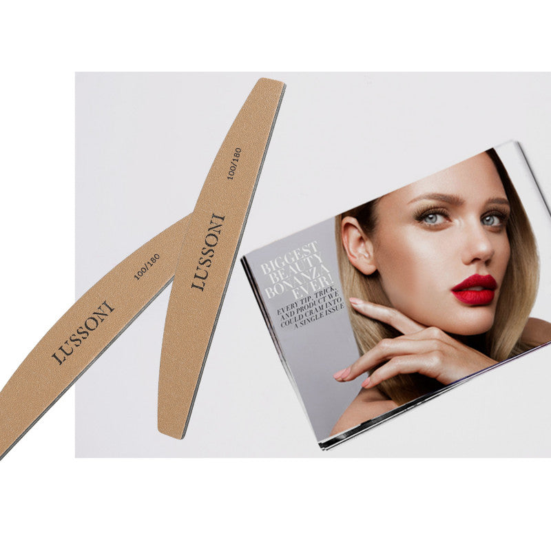 A 100/180-grit file for natural and artificially hardened nails. 100 grit is suitable for filing gel or acrylic whereas 180 grit is recommended for shaping nail plates.