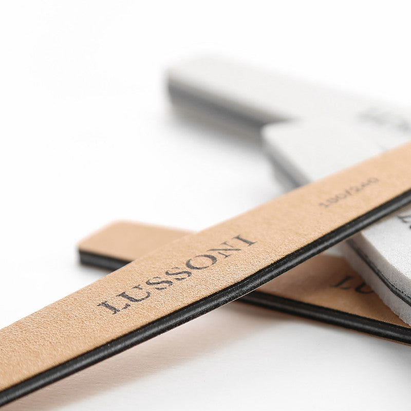 Lussoni double-sided 180/240-grit nail file is suitable for professional or home use. Made of durable materials, Lussoni files retain their properties for a long time.