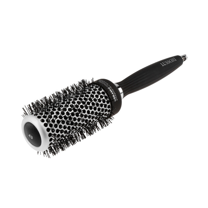 The Lussoni hot volume styling hairbrush was created to meet the needs of every professional who uses styling hairbrushes. At the design and production stage, we cooperated with hairdressers and hair stylists to ensure that every detail was refined to perfection. The round ventilated design with a diameter of 43mm helps dry hair faster. The waved bristles effectively protect hair from damage and accelerate the styling of long and very long hair. The antistatic, ionizing and antibacterial properties of the ceramic coating allow for a faster and even heat distribution making it resistant to very high temperatures up to 220 degrees Celsius. Its removable pin allows easy separation of hair strands and compartments.