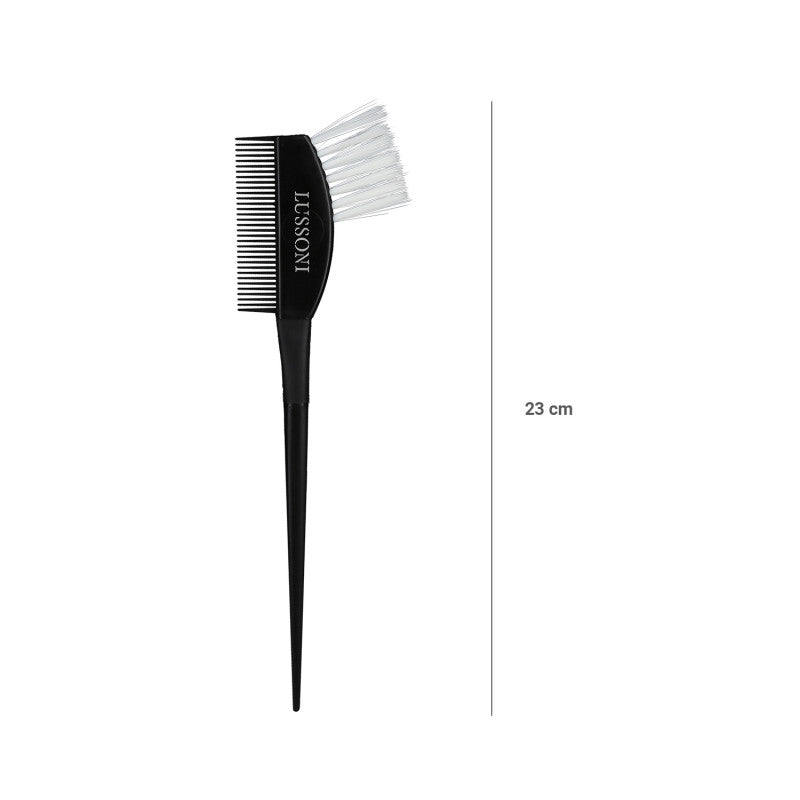 The double-sided colouring brush can be used in any hairdressing salon. The LUSSONI TB 030 has durable, well-shaped nylon bristles on one side and a handy comb on the other. Helps to apply hair dye quickly and evenly. Handle ended with a tip makes it easier to divide hair into sections.