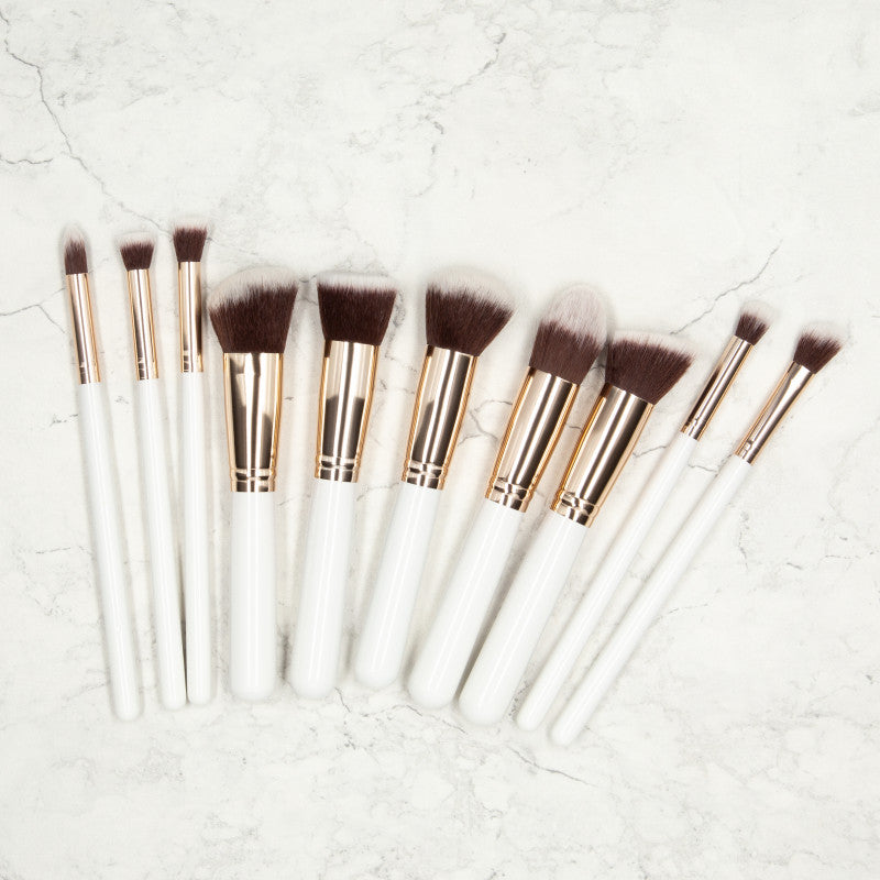 This is a set of 10 professional makeup kabuki brushes contains kabuki brushes suitable for all makeup products. These are multitasking brushes, which are perfect for building coverage, blush and bronzer application and other finishing touches. The smaller brushes are perfect tools for precise face or eye makeup look. Tools For Beauty Professional Makeup brushes stand out on the market with their high quality performance and long durability. The brushes are made of high quality synthetic bristles and enclosed in golden aluminium ferrule with a white, wooden handle.