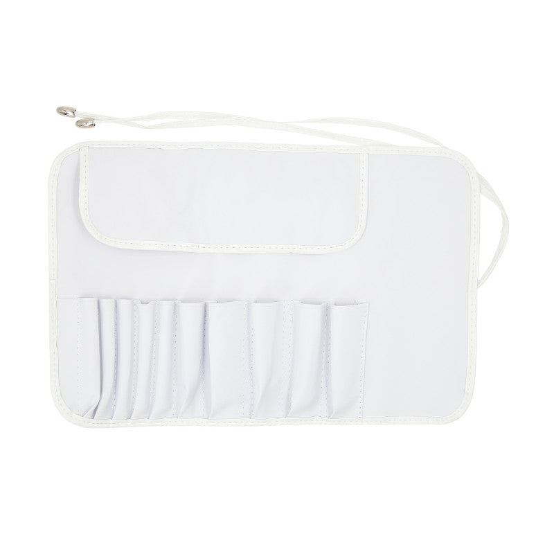 The makeup roll-up case is a great accessory for storing your makeup brushes. It is equipped with 10 compartments to fit 10 makeup brushes. Roll it up, tie it with the string attached and have your favorite makeup brushes always with you.