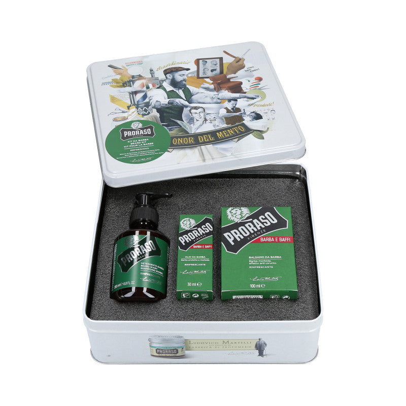 The Proraso set is a great gift for anyone who likes to take care of their stubble. The elegant aluminum can contains 30ml Beard Oil , 100ml Beard Balm and 200ml Beard Shampoo . The fresh fragrance of these cosmetics is pleasantly refreshing, and carefully selected ingredients soothe irritations and moisturize the skin.