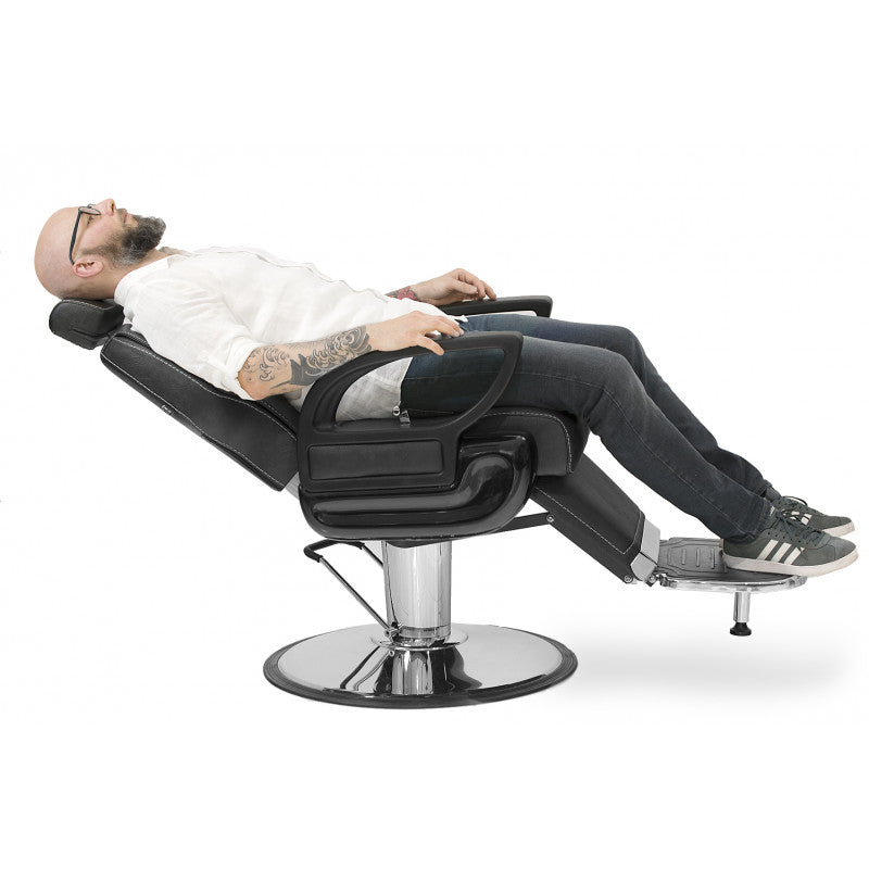 Sakai hairdressing chair Farao is a guarantee of the hairdresser's convenience and customer comfort. The backrest tilts at an angle of 40 degrees, which allows the chair to be positioned appropriately. Thanks to the adjustable headrest and backrest, the armchair is suitable for both hairdressing salons and beauty salons. The lockable hydraulic pump allows you to adjust the optimal working height. The material of the seat part is easy-care, dirt- resistant furniture.