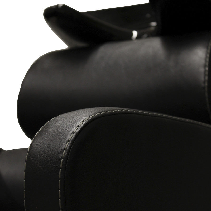 Flex washbasin is compact and ideal for rooms of many sizes. The flexible Sakai Re - Flex backrest guarantees your client the best possible sitting position! A mechanically lifted footrest increases the client's comfort during the procedure. There is a choice of a ceramic washbasin in black or white. The upholstery is made of arelan , which is very durable to use and clean. The product is available with a traditional faucet and an anti -drop shower system. The water parts are certified by the EU.