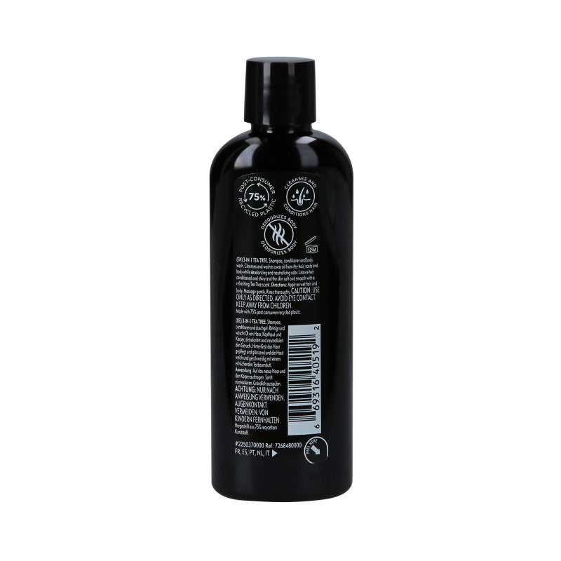 Zawiera olejek z drzewa herbacianego, który jest często stosowany w walce z głównymi problemami skóry głowy. Zmniejsza łupież, normalizuje wydzielanie sebum i redukuje świąd wrażliwej skóry głowy. Olejek z drzewa herbacianego ma także właściwości antybakteryjne, przeciwgrzybicze i przeciwzapalne. Dodatkowo wyciąg z liści szałwii wzmacnia włosy i odżywia cebulki oraz nadaje włosom gładkość i połysk.
