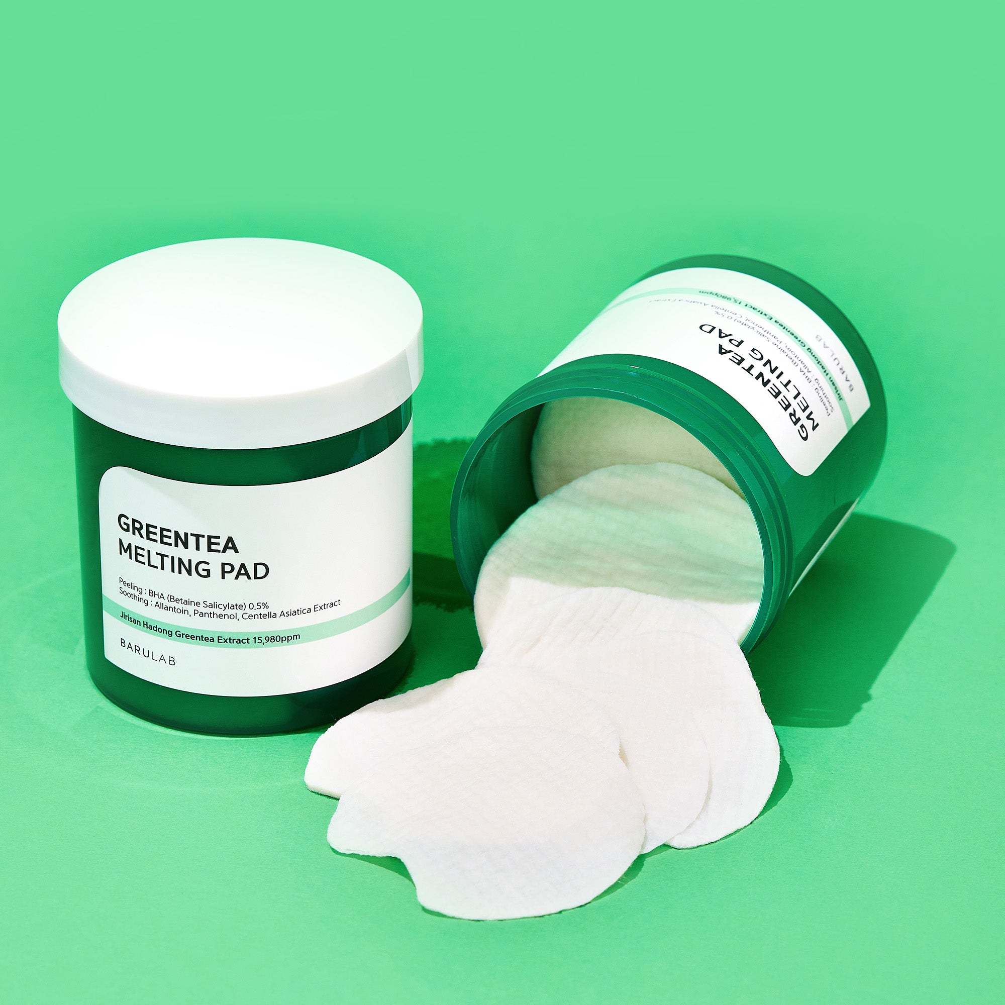 BARULAB Greentea Melting Pad to łagodzące i oczyszczające płatki tonizujące, które łączą działanie BHA (5 000 ppm) z kojącą mocą ekstraktu z zielonej herbaty. Skutecznie usuwają martwe komórki naskórka, nadmiar sebum i zanieczyszczenia, nie naruszając bariery hydrolipidowej skóry.