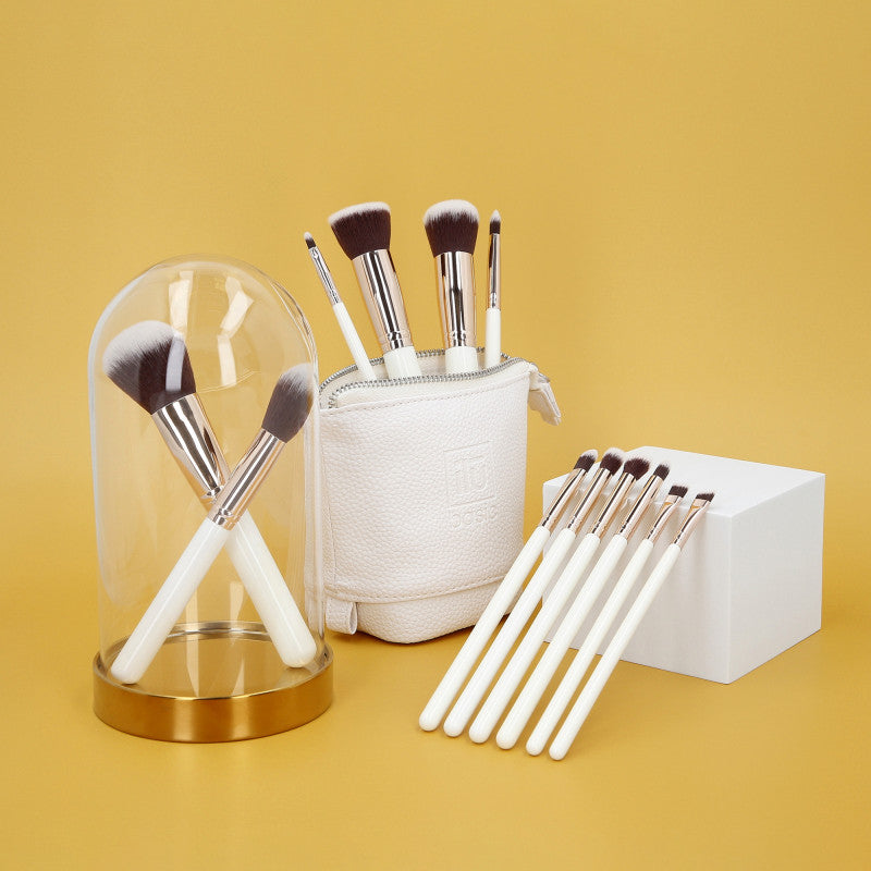 Ten zestaw do makijażu zawiera 12 pędzli kabuki. Pędzle są wyposażone w wegańskie włosie, złote skuwki oraz drewniane rączki. Do zestawu dołączone jest rozkładane etui idealne do przechowywania pędzli w domu, jak i zabrania ich w podróż. Etui jest wykonane z wegańskiego materiału i wyposażone w wysokiej jakości miedziany zamek błyskawiczny.