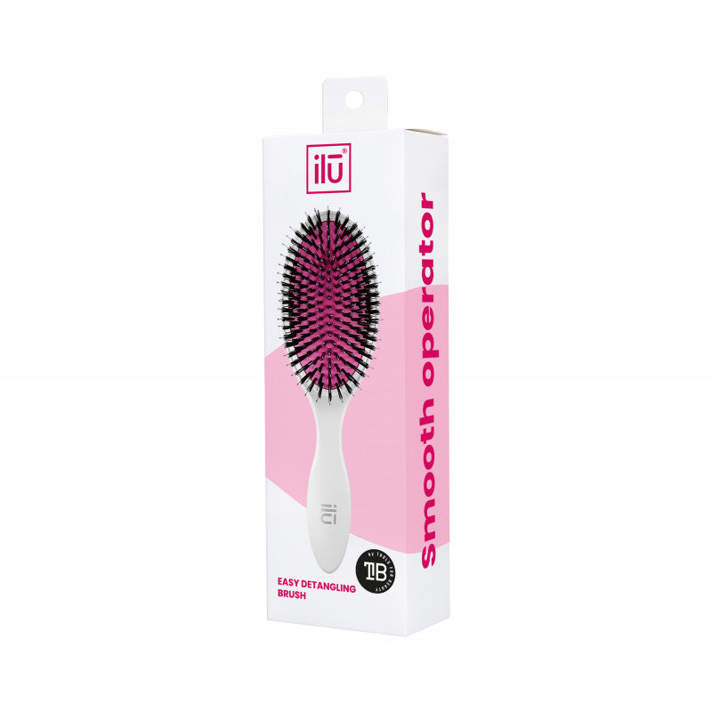 Owalna szczotka do rozczesywania włosów ilu Smooth Operator została wyprodukowana z tworzywa bardzo wysokiej jakości i zaprojektowana tak, by nie niszczyć włosów podczas rozczesywania. Syntetyczne ząbki i włosie są delikatne nawet dla bardzo splątanych kosmyków i zapobiegają ich elektryzowaniu. Szczotka doskonale sprawdza się podczas czesania zarówno mokrych, jak i suchych włosów.
