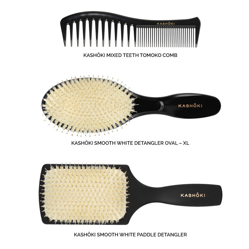 KASHŌKI Zestaw do rozczesywania: 2 szczotki z włosiem dzika i grzebień