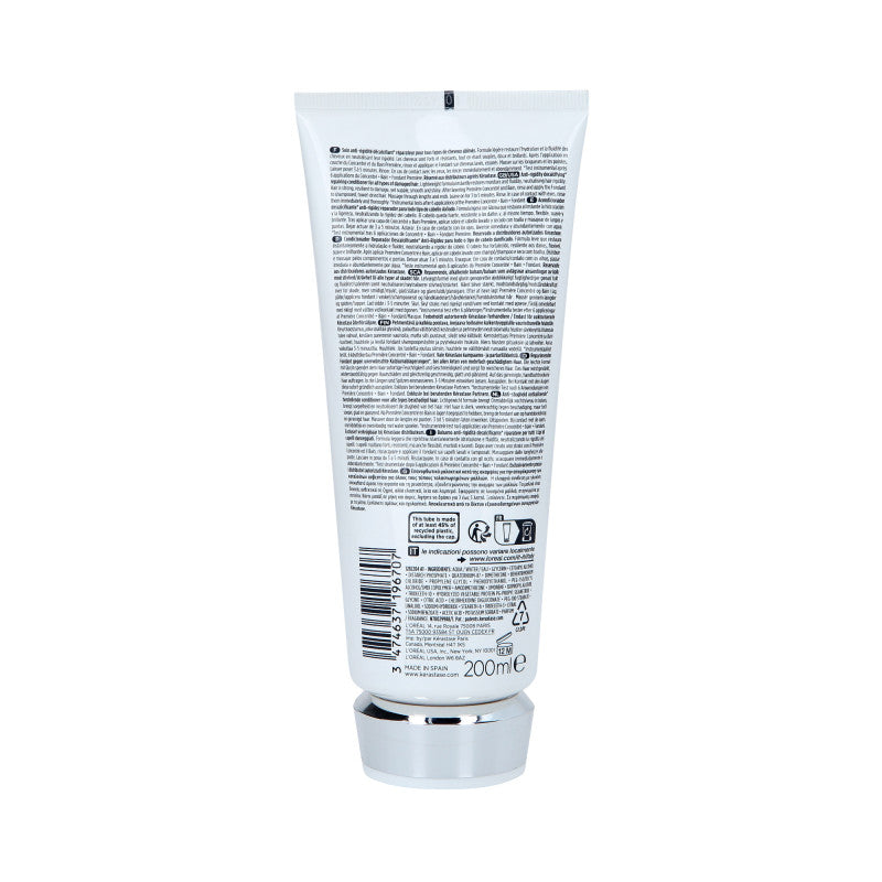 Naprawcza, odwapniająca i rozplątująca odżywka do zniszczonych włosów. Usuwa nadmiar wapnia, który atakuje uwrażliwione włosy i naprawia uszkodzenia dzięki podwójnemu działaniu, przywracając miękkość, nawilżenie i wytrzymałość. Pierwsza odwapniająca odżywka naprawcza Kérastase do wszystkich rodzajów zniszczonych włosów. Działa w celu przywrócenia pierwotnej elastyczności włosów, wzmacniając ich włókna. Natychmiast przywraca nawilżenie i płynność leczonym lub rozjaśnianym włosom. Gdy włosy są już uszkodzone, wapń się gromadzi, dodatkowo osłabiając łuskę włosa i korę. Podwójne działanie Kérastase Fondant Fluidité Réparateur zwalcza nadmiar wapnia, najpierw odwapniając, a następnie naprawiając włosy. Kérastase Première Fondant Fluidité Réparateur otula włosy lekką, galaretowatą konsystencją, przywracając im siłę i odporność. Pozostają niesamowicie miękkie, gładkie i elastyczne. Tubka wykonana w 45% z przetworzonego plastiku.