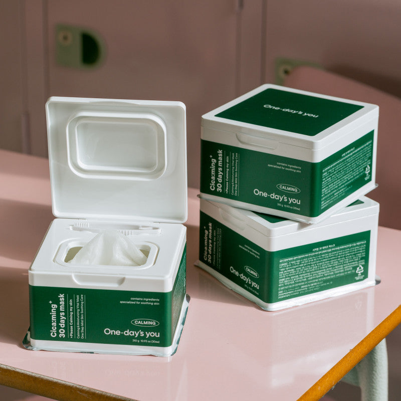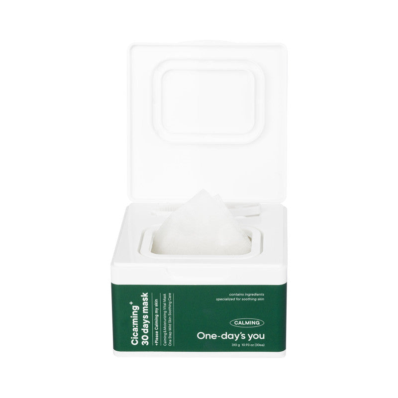 ONE-DAY'S YOU Cica:ming 30 Days Mask to zestaw 30 delikatnych masek w płachcie, nasączonych intensywnie nawilżającą esencją, które koją, nawilżają i wzmacniają barierę ochronną skóry. Dzięki ekstraktowi z wąkroty azjatyckiej (Centella Asiatica) oraz składnikom roślinnym o działaniu przeciwzapalnym, maseczki są idealne do codziennego stosowania, szczególnie dla skóry wrażliwej i podrażnionej.