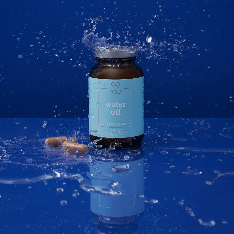 YOU WATER OFF to suplement diety stworzony z myślą o osobach, które pragną pozbyć się uczucia ciężkości. Dzięki właściwością diuretycznym, jest idealnym wsparciem dla każdej aktywnej osoby, pomagając utrzymać uczucie komfortu i lekkości na co dzień. W każdej kapsułce znajdują się specjalne ekstrakty roślinne: z zielonej herbaty i pokrzywy zwyczajnej, a kluczowym składnikiem formuły jest opatentowany ekstrakt z opuncji figowej — Cactinea™. która poprawia sylwetkę oraz zmniejsza uczucie ciężkich nóg i obrzęków.
