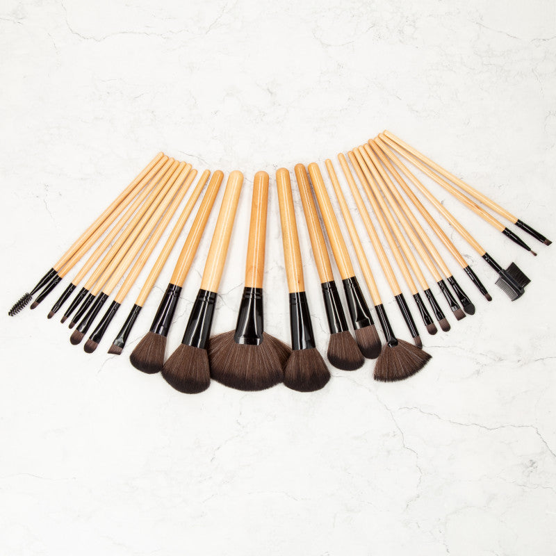- 2 pędzle wachlarzowe – pędzle do omiatania, doskonałe do nakładania rozświetlacza, a także do oczyszczania twarzy z drobinek cieni do powiek i innych osypanych kosmetyków