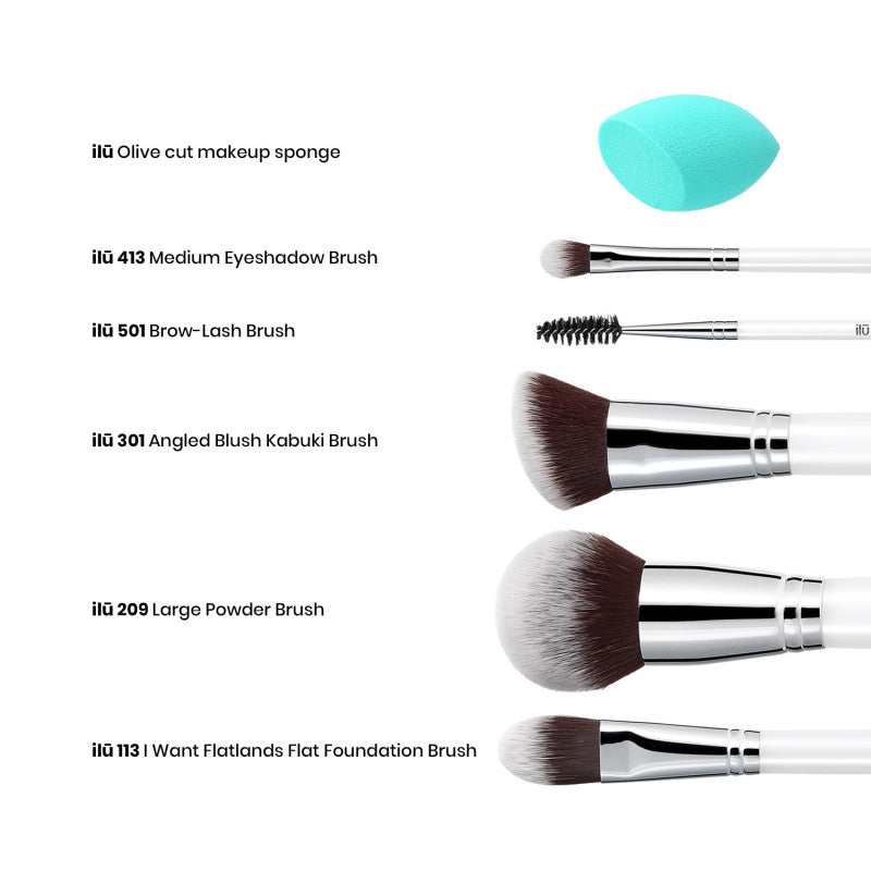 ilū Everyday Essentials – 6-częściowy zestaw pędzli do makijażu z gąbką